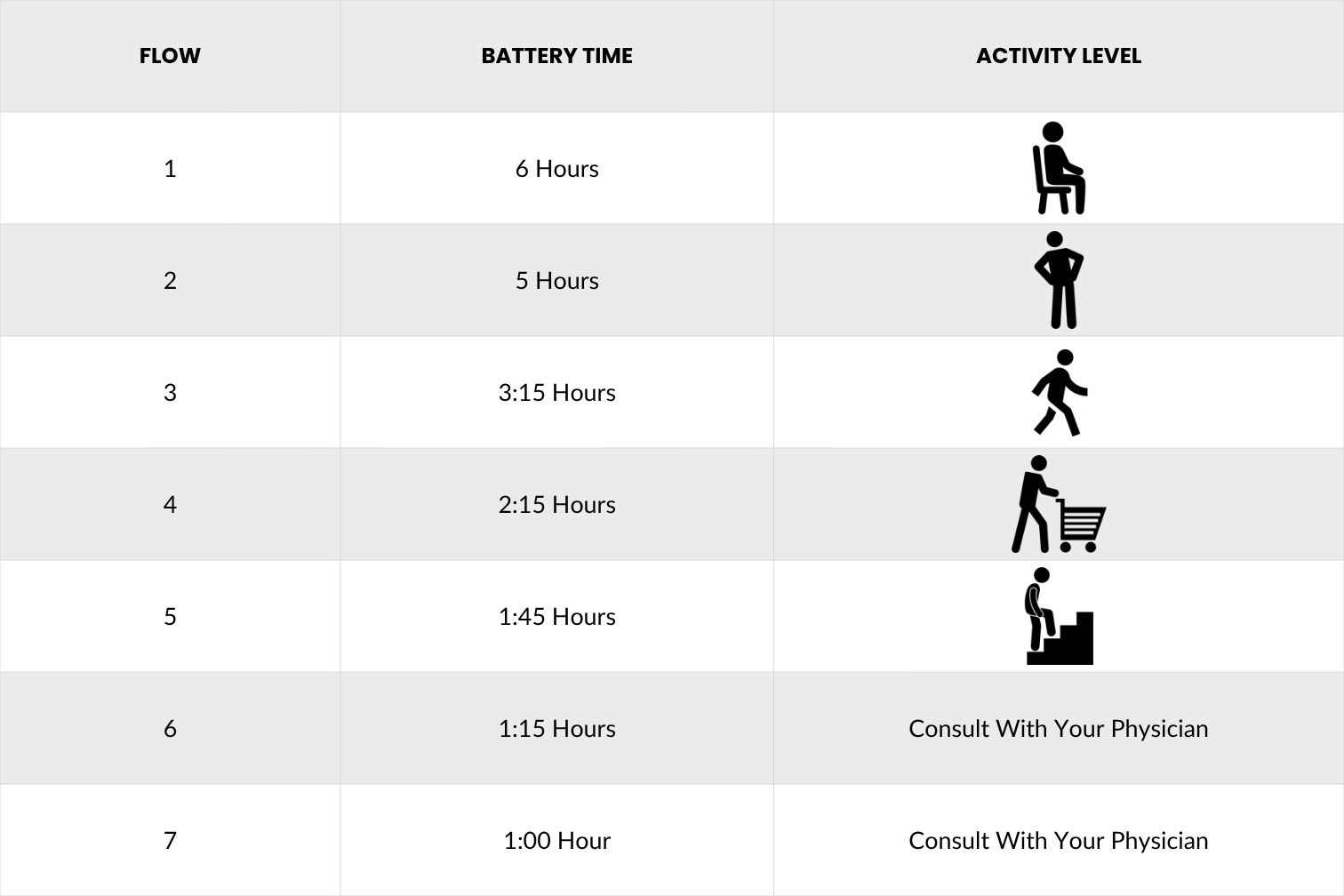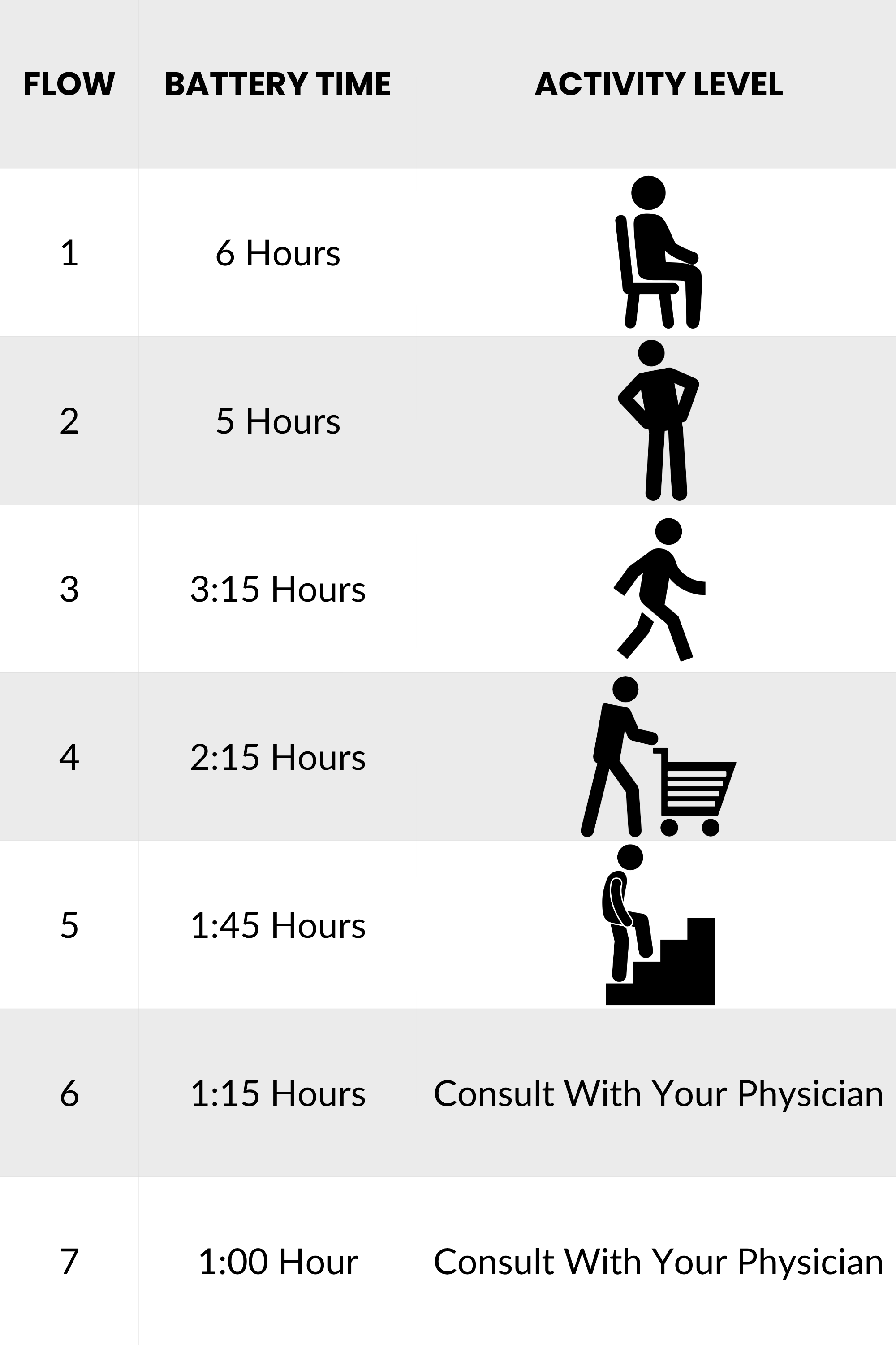 OxyQ7 Battery Time & Activity Level