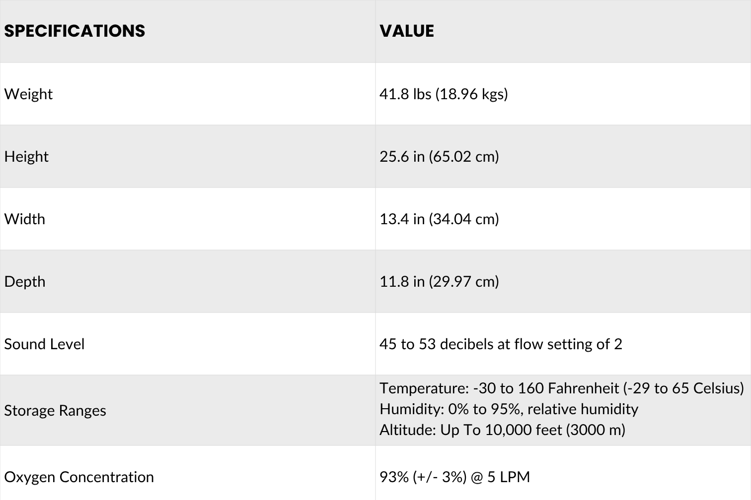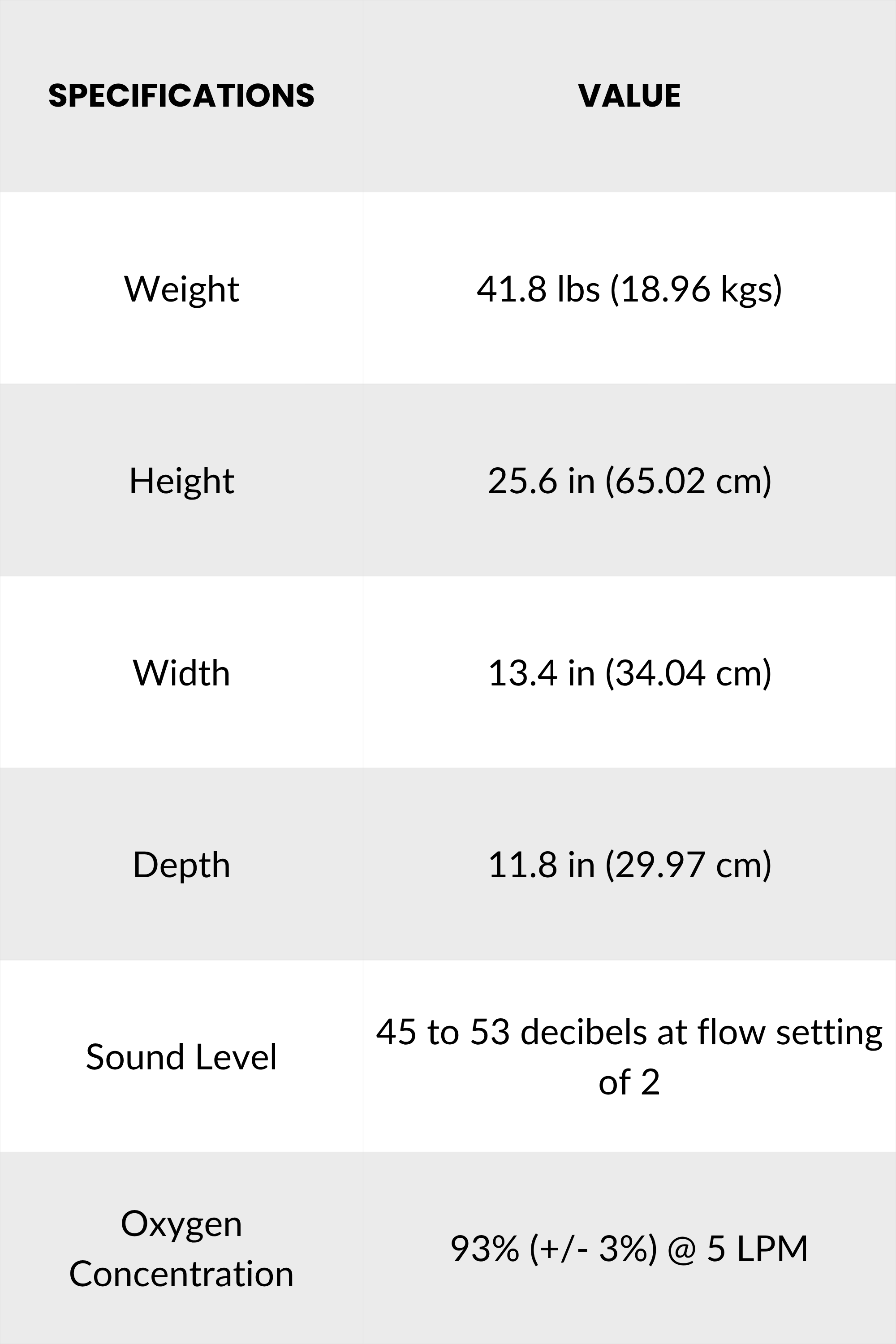 OxyHome 5L Specifications