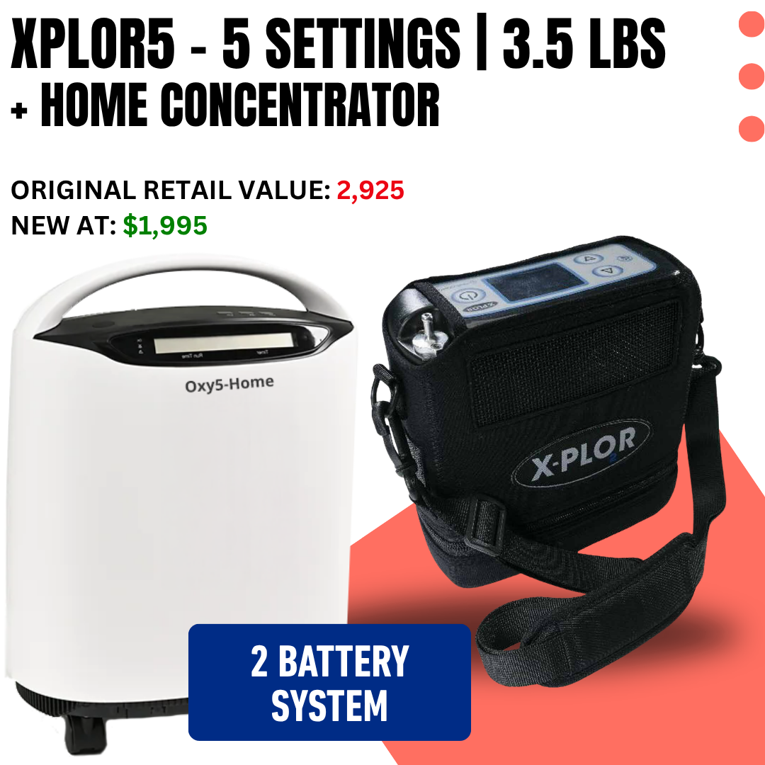 The X-PLOR Portable Oxygen Concentrator combines lightweight design with powerful performance to give you freedom and peace of mind. Weighing only 3.5 pounds, it’s compact and easy to carry—perfect for staying active at home, running errands, or traveling plus it's FAA Approved.